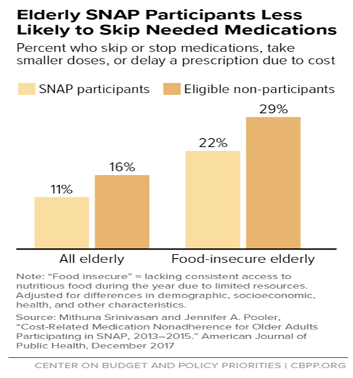 For older adults, SNAP participation is associated with nearly 10% higher medication adherence, fewer hospitalizations, and lower Medicare and Medicaid expenditures. On average, a SNAP participant incurs $1,400 less in annual healthcare costs compared to a low-income nonparticipant. Collectively, these findings demonstrate that SNAP is not just an anti-hunger initiative but a preventive health and economic policy that yields measurable returns for individuals, families, and society at large.